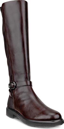 Polished hardware and rich leather distinguish a versatile tall boot grounded by a cushioned footbed and grippy rubber sole.