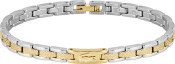 This two-tone bracelet is designed with iconic Lacoste DNA from the signature crocodile to the piqué-inspired engraving.