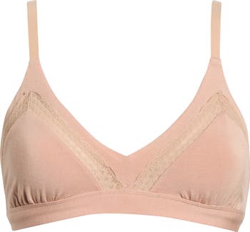 Stay comfy all day in a soft, stretchy triangle bralette featuring fuller-coverage cups, lacy trim and a featherlight band that provides wireless support.