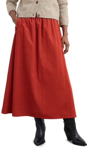 A vibrant shade draws the eye to this staple A-line midi skirt made from pure organic cotton and cut in a breezy A-line silhouette.