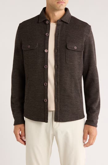 Look handsomely rustic while staying comfortable when it's chilly in this soft overshirt knit from wool and cotton.