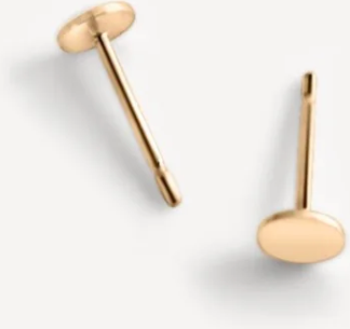 A 4mm flat gold disc that sits flush against the lobe and catches light without announcing itself. The Mia is the stud you add to a stack to fill a piercing, or wear alone when you want to feel put together without thinking about it. Small, flat, and exactly right. 14k gold fill. 4mm disc. Butterfly backs. Sold as a pair.