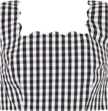 A darted bust brings classic structure to this flirty gingham crop top finished with a square, scalloped neckline.