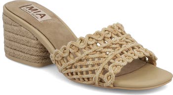 A woven strap and espadrille-inspired block heel make this sandal a warm-weather standout.