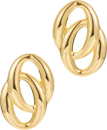 Sculptural loops interlink and catch the eye in these drop earrings plated in warm 18-karat gold.