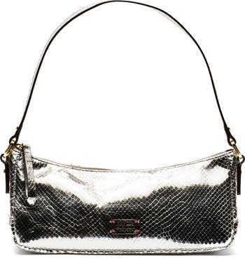 Meet Mia—the perfect little shoulder bag for your big plans. Steeped in '90s nostalgia, this mega-glam baguette bag strikes the perfect balance between structure and slouch, with a curved base and soft body that contours comfortably to your shoulder. The snakeskin-embossed metallic leather brings luxe texture and head-turning shimmer to your look.