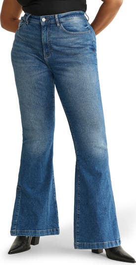 Easy to style up or down, these low-stretch jeans feature a sculpting high waist and flared legs with split hems to visually elongate your silhouette.