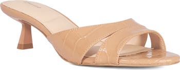 Subtle cutouts and a slim almond toe bring easy dimension to a minimalist leather sandal set on a tapered kitten heel for a whisper of height.