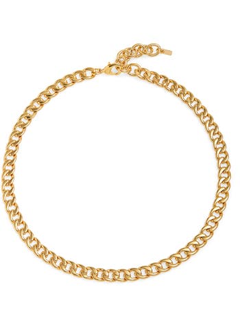 The handcrafted chain links of this day-to-night necklace really set off the dimensional shine of the electroplated 14-karat gold.