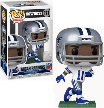 Micah Parsons (Dallas Cowboys) Funko Pop! NFL Series 9. Comes packaged in a Funko Pop window display box.