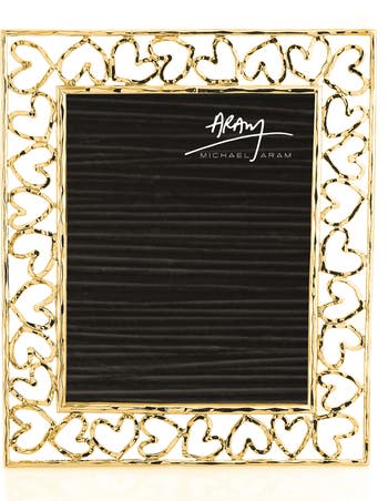 Delicate hearts form the border of a gleaming picture frame that's perfect for displaying a favorite memory.