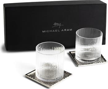 Michael Aram's meticulous craftsmanship and inspiration of the palace of Versailles lend a sophisticated touch to this drinkware set featuring oak- and ivy-textured tumblers and coasters that instantly elevate your barscape.