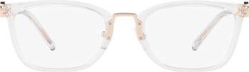 Bold square frames combine with logo-accented metal arms in these chic optical glasses.