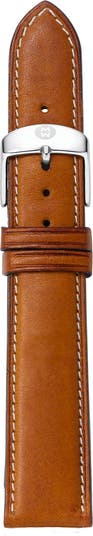 Topstitching lends bright contrast to a neutrally hued leather strap with an interchangeable design.