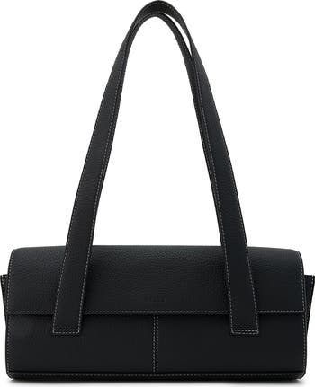 Clean lines highlighted with contrast topstitching and an east/west profile add everyday sophistication to this structured shoulder bag made from pebbled leather.