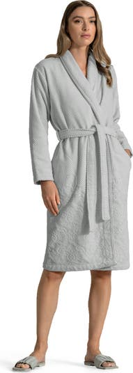 Michelle' is a classic monochromatic model of a kimono robe with a shawl collar and a belt, made of high quality combed 100% cotton.