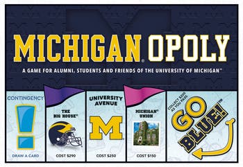 • THEMED OPOLY Strategy board game. A fun game celebrating the beautiful & vibrant University. Engaging & Educational. Go Blue! Celebrate the legacy and traditions of Michigan with every move you make.
