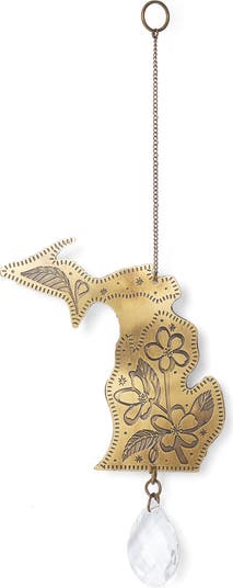 Celebrate Michigan States orchard country with a brass state-shaped suncatcher featuring its official state flower, the Apple Blossom. The engraving highlights the blossoms delicate shape, while the crystal prism scatters sunlight beautifully. This suncatcher makes a sweet nod to the states agricultural roots and natural charm. Ideal for gifting to Michigan State locals or anyone who loves floral-inspired décor.