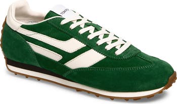 A study in contrasts, this sneaker borrows the swift lines of a retro runner then sharpens them with Tom Ford polish. Bold suede-and-leather accents layer depth across the upper while a sculpted chunky sole climbs the back heel for a definitive finish.