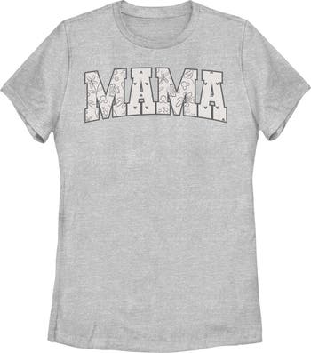 - Add a bit of magic to your mom's day with this stylish new women's t-shirt! Featuring a cool graphic of the word: "Mama" with Mickey and floral-themed patterns printed inside each letter across the front.