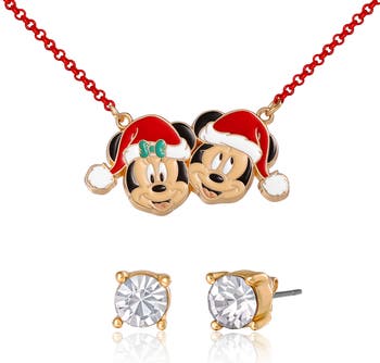 - Necklace + stud earrings set with holiday Mickey & Minnie