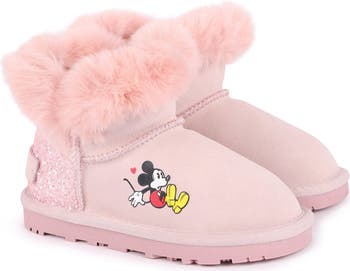 The Mickey Faux Fur Boots with a full faux fur lining and small mickey graphics. Perfect for the colder weather.