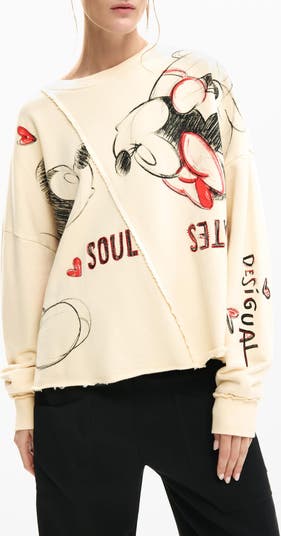 Your favorite cartoon power couple displays their soulmate status on this roomy cotton-fleece sweatshirt with shredded seams and a whipstitched logo at the nape.
