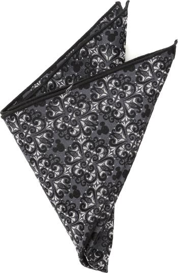 A subtle Disney design puts a signature stamp on a charming pocket square cut from pure silk.