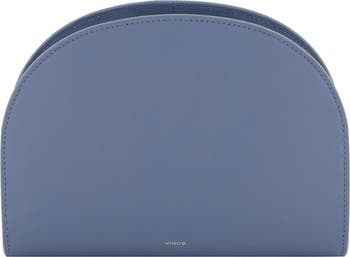 Clean lines and smooth leather highlight the half-moon silhouette of a compact wallet featuring an optional crossbody strap for hands-free convenience.
