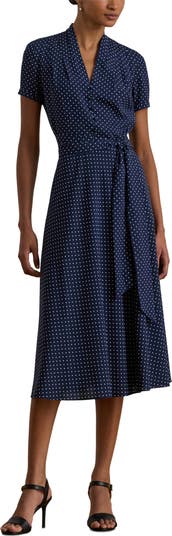 Delightfully dotted and sash-tied, this desk-to-dinner dress is cut from airy crêpe de Chine and offered in a beloved and versatile midi length.