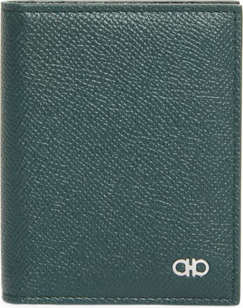 Gently hammered calfskin leather and gleaming double-Gancio hardware lend added elegance to this sleek bifold wallet cast in a verdant, moss-inspired hue.