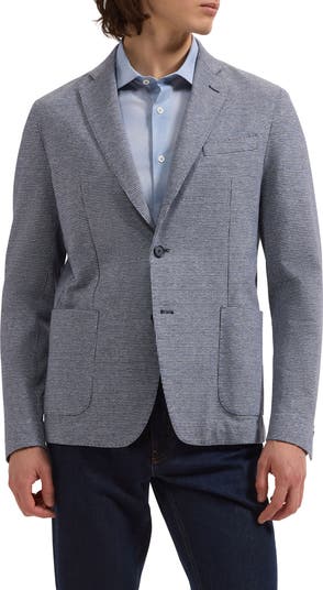 A houndstooth-patterned knit made of cotton and linen relaxes the formality of a sport coat designed with softer construction in the shoulders for easy-moving comfort. Patch pockets and a partial lining emphasize the casual style that's perfect for elevating an everyday look.