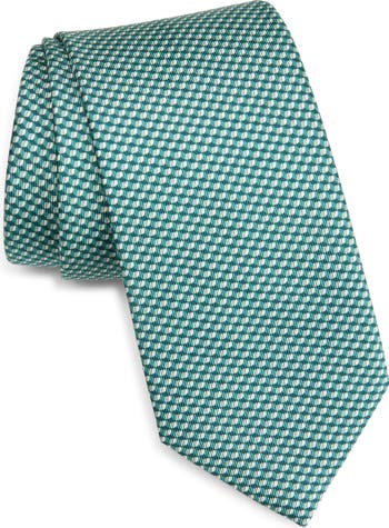 A small, neat pattern brings understated distinction to this lustrous Italian-silk jacquard tie that complements formal and semiformal attire.