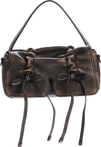 Structure and suppleness work together to form this baguette bag that's made in Italy from calfskin leather that's washed for a vintage effect. The multipocketed construction is detailed with knotted lacing and jean-inspired rivets for texture and dimension. A logo-debossed heart adds a playful signature to the look.