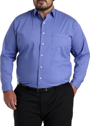 Designed with precise proportions and an ideal fit for Big and Tall guys, this grid-patterned performance dress shirt from Synrgy was crafted at DXL with mechanical stretch to help you look and feel your best. The spread collar expands up to an extra half inch for comfort and the timeless geometric pattern adds visual interest._x000D_ _x000D_