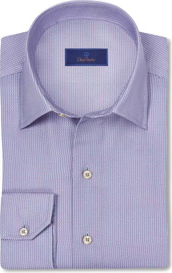 Long-staple pima cotton brings polish and comfort to a shirt tailored from a soft dobby weave and styled in a neat micropattern for a crisp, distinctive finish. Tailored like a dress shirt, it adds a smart foundation to your favorite semiformal looks.