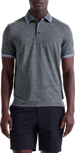 Textured dots neatly punctuate the grey-mélange knit of a polo that's tipped at the collar and sleeves and designed to block UV rays to extend your fun in the sun. Wear it for a round of golf, an alfresco lunch, or any day where you need to look smart and want stay comfortable.