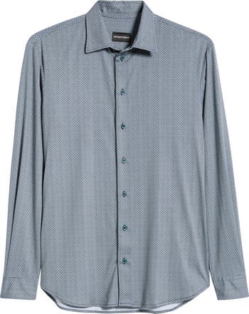 Smart and versatile, this stretch-enhanced shirt features crisp patterning and a smooth finish that resists wrinkles to keep you looking sharp on busy days and long travel. Wear it tucked or untucked to change up your style depending on the occasion, the setting or your mood.