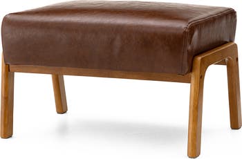 The Spacious upholstered cushion and flared wooden legs of this Mid Century-inspired wooden stool will make your house even more adorable. With sturdy rubberwood legs, high-density foam, and easy-to-maintain premium leather, this wooden stool not only boasts a stylish design but also delivers excellent usability.