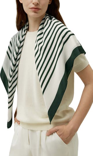 This versatile scarf features a sophisticated double-sided print, providing two distinct yet equally chic looks in one refined design. Each side of the scarf displays a timeless geometric pattern inspired by early 20th-century Constructivism, lending a sharp, modern edge to its classic aesthetic.