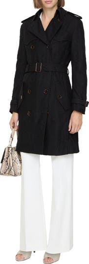 Inspired by an archival Burberry coat from the 1970s, the Foxfield trench is defined by a pointed yoke and structured set-in sleeves. Crafted from lace with a paisley pattern, the design is tailored to a regular fit and features our B buckle belt and cuffs.