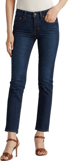A slim straight-leg fit and classic dark wash bring ultimate versatility to these wear-anywhere jeans fabricated with just the right amount of easy-moving, flexible stretch.