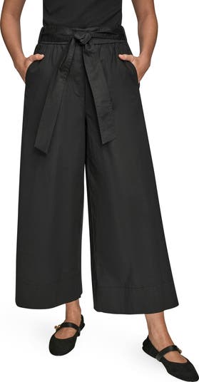 Cropped and flowy, these wide-leg pants are made of stretch-enhanced cotton and designed with a removable tie belt that's secured by a button in the back.