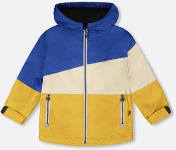 Our recycled polyester mid-season jacket in dark royal blue blends functionality with a touch of adventure. Waterproof and fluorocarbon-free, this jacket features an eco-friendly BIONIC-FINISH® ECO coating, a polar fleece lining, and critically taped seams for added protection. Designed with side zip pockets, adjustable Velcro® cuffs, and a YKK® zipper, it keeps boys warm, dry, and ready for spring adventures.