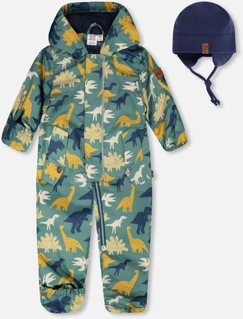 Stylish and functional, this baby mid-season one-piece outerwear with hat printed keeps little boys cozy during outdoor adventures. Designed with eco-friendly recycled fabric, this suit features a polar fleece lining and flip-over hands and feet for adaptable comfort. The BIONIC-FINISH® ECO coating ensures water and dirt resistance, while the brushed jersey hat completes this soft and practical ensemble.