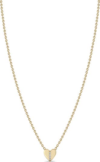 A trail of twinkling pavé set diamonds runs through the heart pendant on this dainty 14-karat gold necklace.