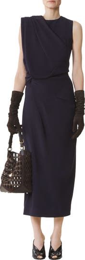 This dress is crafted from washed wool flannel to achieve a vintage effect. Its drape creates an elegant silhouette, making it the perfect choice for a sophisticated daytime outfit.