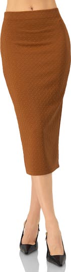 Fitted midi skirt featuring a back zipper and slit for ease of movement.