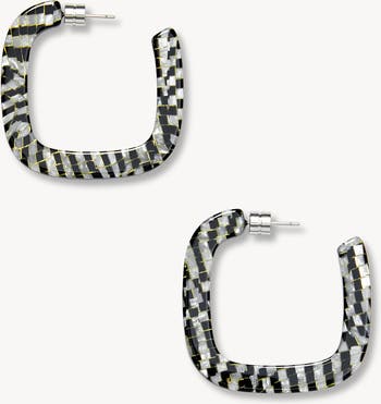 Squared hoop earrings, handcrafted from our lightweight Italian acetate with engraved barrel backings.