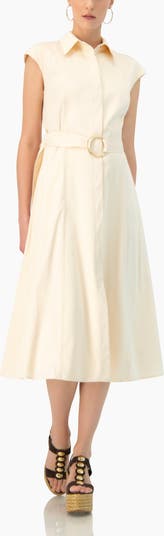 Elegant midi shirt dress with a belt and dropped shoulder design